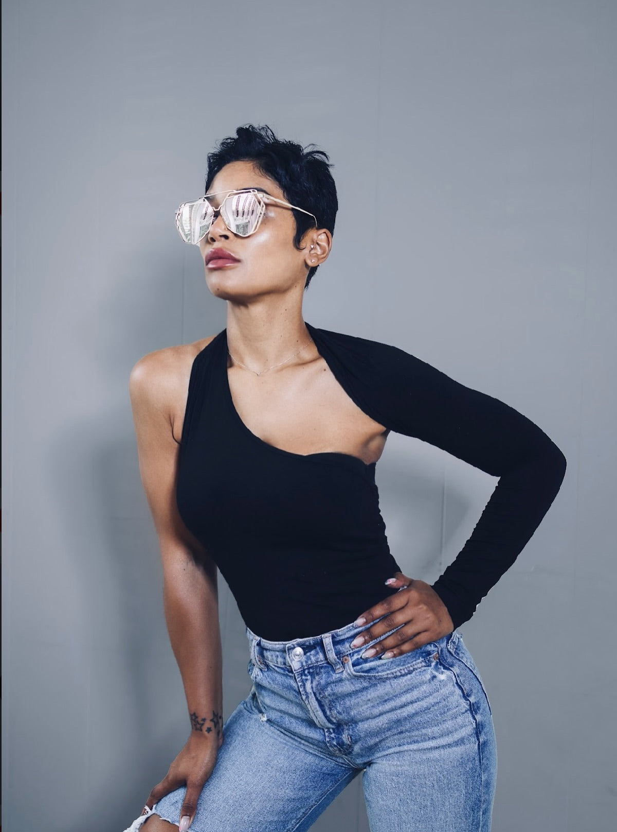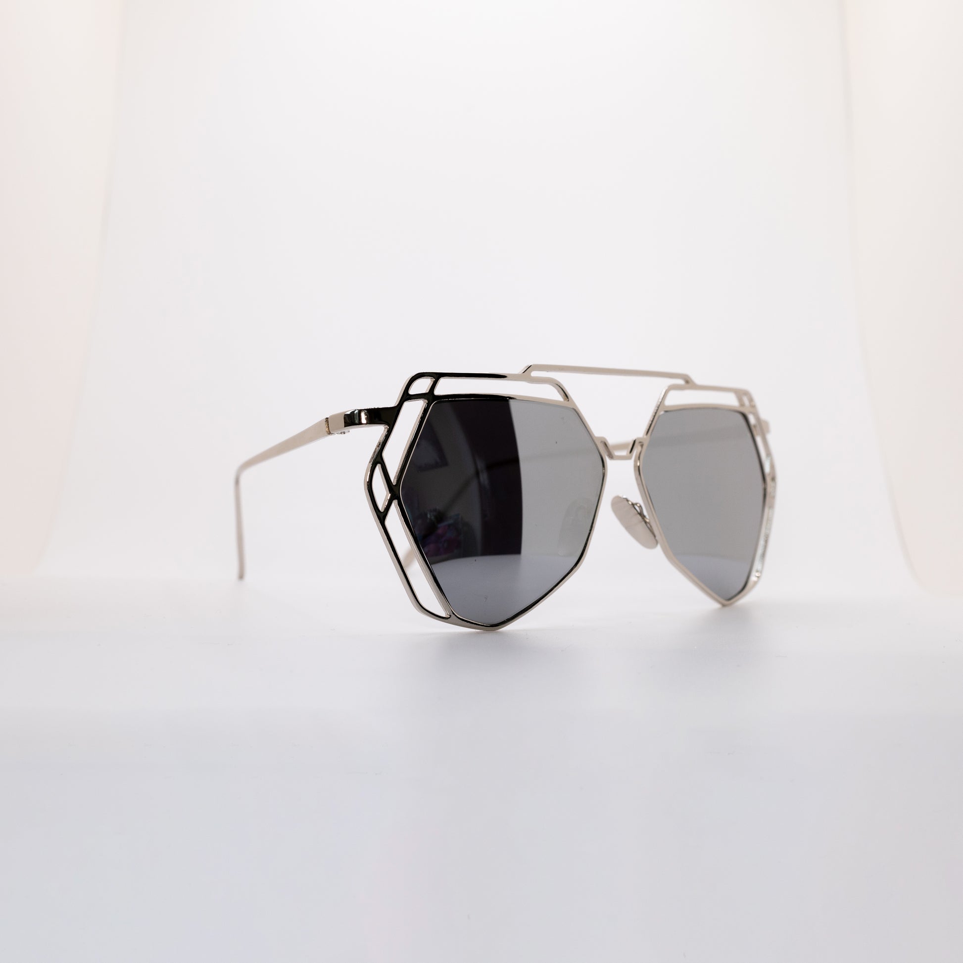 Oversized Hexagon Aviator Mirror Shades, available in Gold w/pink lens and Silver w/silver lens